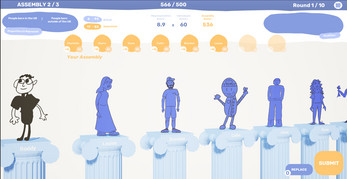 Made by Patrick Brennan and Janess Dunlea for the citizens assembly game jam. We also enlisted the help of friends and family to create personalized artwork for each of the characters, using the game design process as an opportunity to spread awareness of and advocate for citizens assemblies.